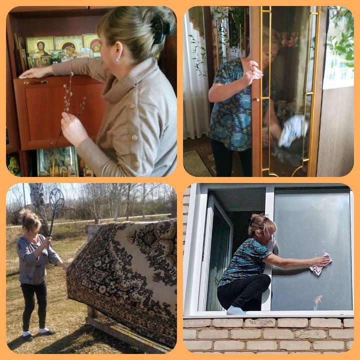 Наведение порядка в преддверии Пасхи- давняя традиция. Социальные работники продолжают активно помогать получателям услуг, находящимся  на надомном социальном обслуживании, к подготовке к православному празднику Светлого Христова Воскресения.  Проводят генеральные уборки, моют окна, потолки, помогают избавиться от мусора, скопившийся за весь предыдущий год. Ведется уборка не только в домах, а также на придворовых территориях.